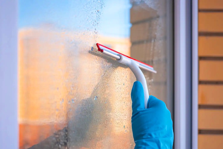 3. Правильная техника. Начинайте мытье с верхней части окна и двигайтесь вниз. Таким образом, вы предотвратите стекание грязной воды на уже очищенные участки. Используйте сгон, чтобы удалить излишки воды, а тряпкой или губкой ополаскивайте места, оставшиеся после сгона.